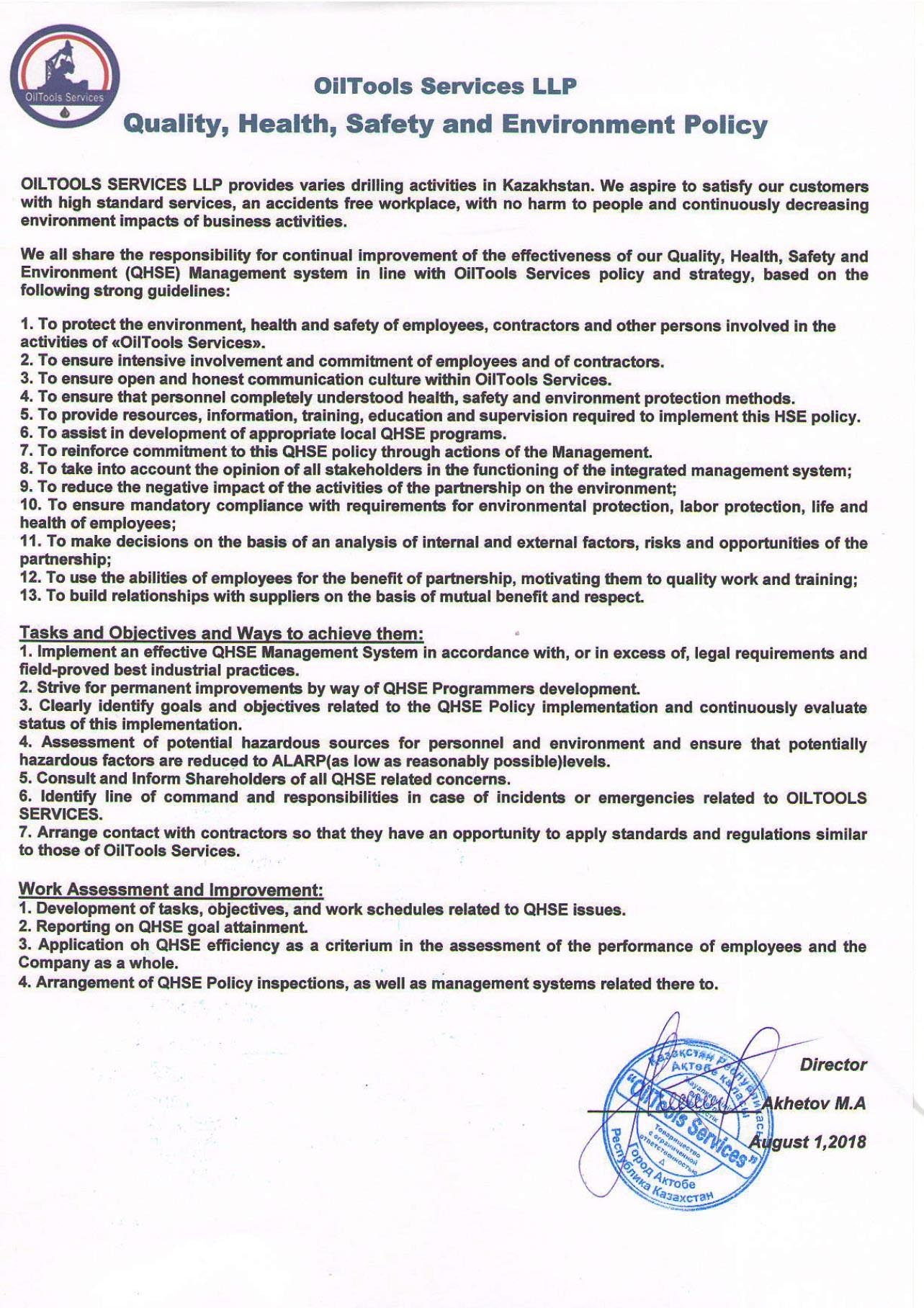 With the support of our leadership and employees, we abide by comprehensive HSE and Quality Management Systems which solidify our commitment to OilTools Service’s core values and enforce our accountability to safe practices.